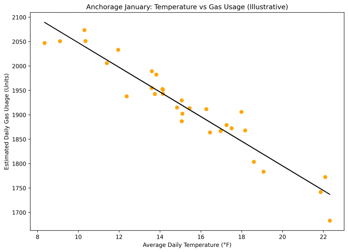In a climate like Anchorage, this effect compounds quickly. Even a few degrees colder on average, spread over weeks, can significantly increase how much gas your system uses over the course of a winter. That’s why higher bills can happen even when thermostat settings stay the same.